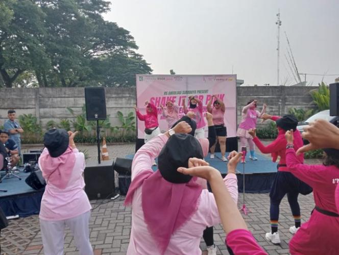 Dalam rangka puncak peringatan Breast Cancer Awareness Month 2025, RS Onkologi Surabaya (RSOS) menggelar kegiatan bertema “Shake It for Pink : Zumba & Health Education” yang dikemas dengan penuh semangat kebersamaan dan kepedulian terhadap kesehatan. Acara yang berlangsung di Hotel Aston Sidoarjo berkolaborasi dengan Komunitas CAMAR (CAmamae Reach to Recovery) Sidoarjo ini dihadiri oleh lebih dari 150 peserta, terdiri dari masyarakat umum, breast cancer survivor, rekanan korporat, RSOS Family, serta dokter dan staf RSOS.