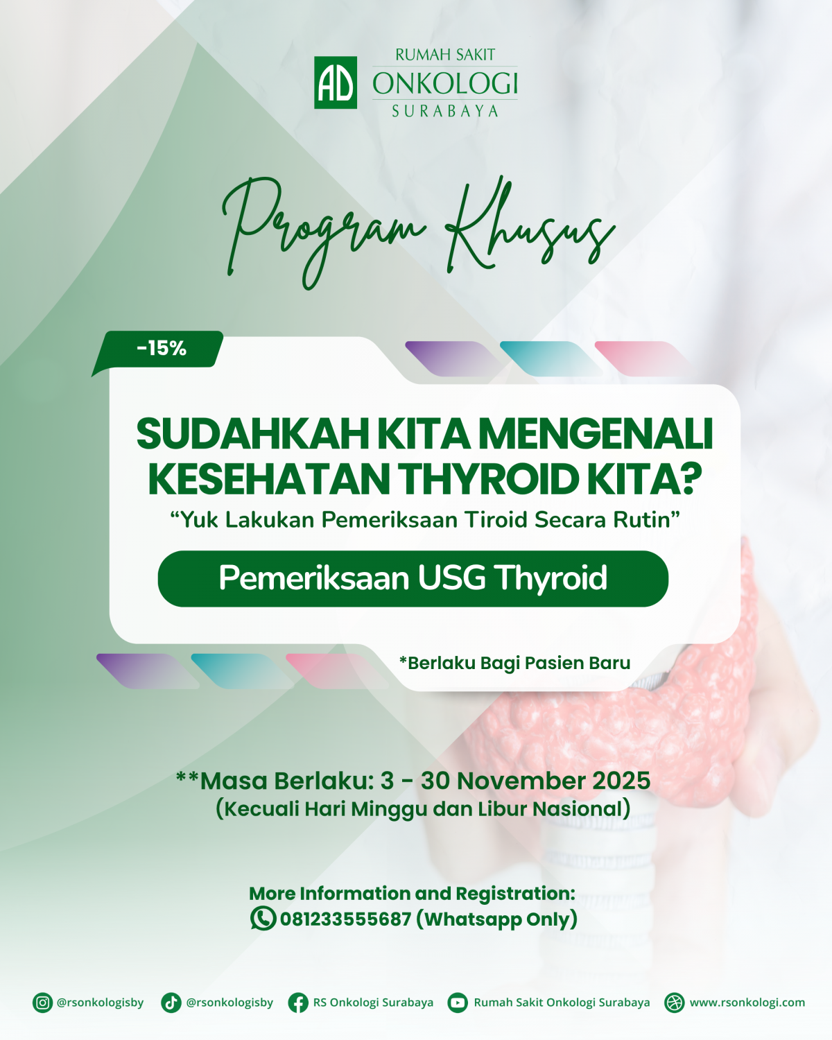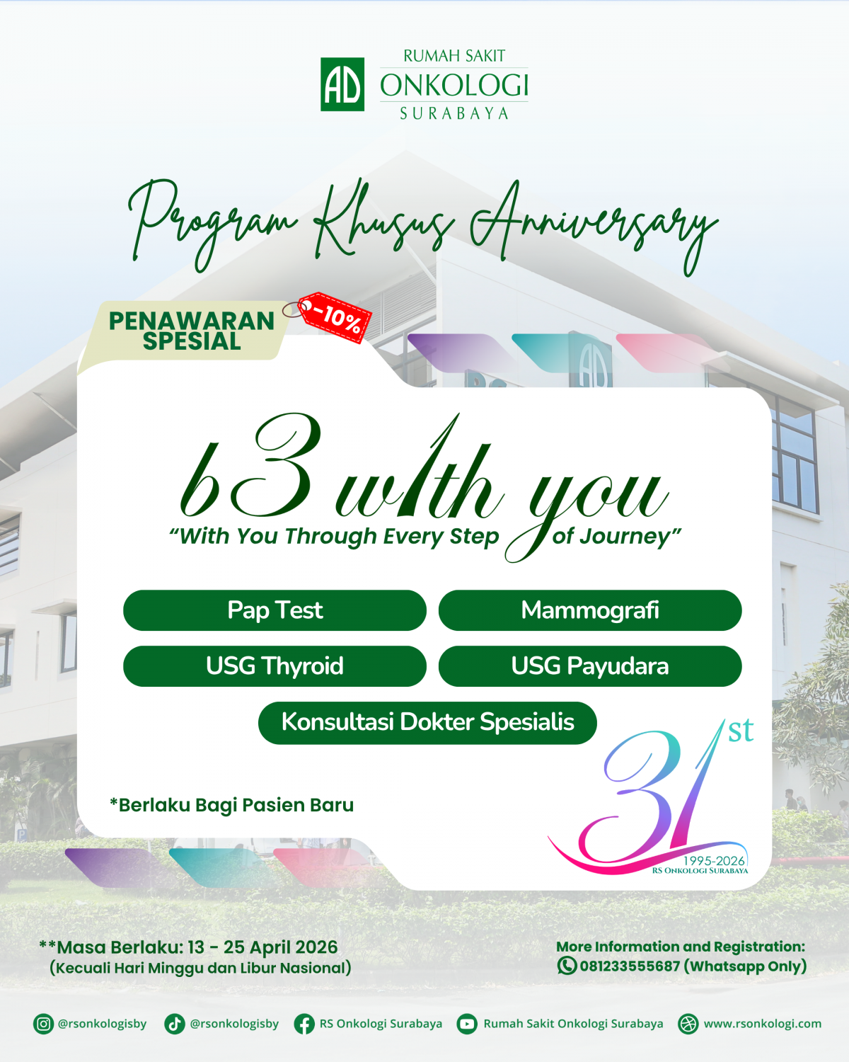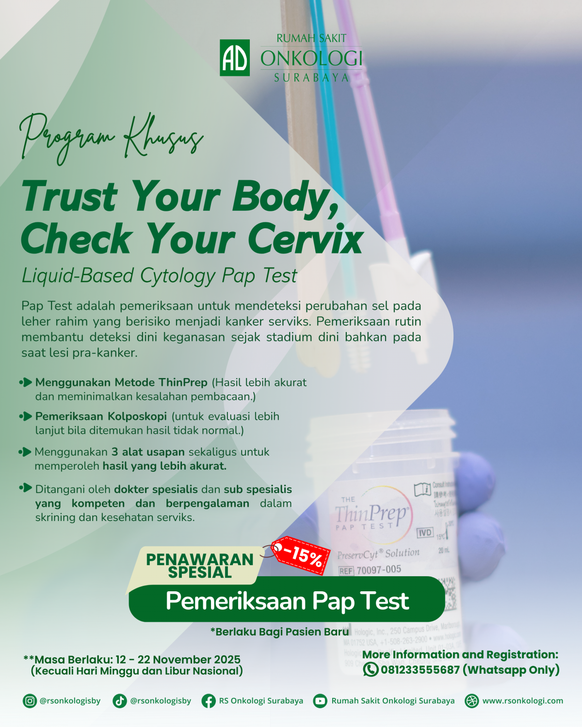 Segera jadwalkan kontrol tahunan Anda bersama RS Onkologi Surabaya dan berikan perlindungan terbaik bagi Anda dan Keluarga.