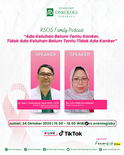 Dalam perbincangan kali ini, dr. Bob J. Octovianus, Sp.B.MCH.., FICS (Breast Surgeon and Oncoplasty RS Onkologi Surabaya) bersama Ibu Lulu Indah Kumalasari (Breast Cancer Survivor), akan membahas realita di balik deteksi dini dan pentingnya memahami tubuh sendiri.