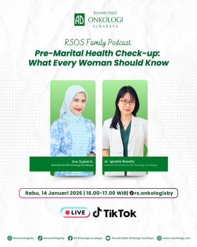 (General Practitioner RS Onkologi Surabaya) dan Eva Sujiati K. (Nutritionist RS Onkologi Surabaya) bahwa pemeriksaan kesehatan pra-nikah bukan sekadar formalitas, Melainkan langkah preventif penting untuk mendukung kualitas hidup dan perencanaan keluarga di masa depan.
